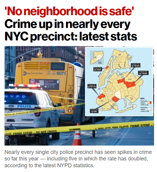 Maybe because the NYPD are being pimped out to serve the NWO and their vaccine mandates!!! Get the F back to fighting crime! Stand with the people and with the Constitution!