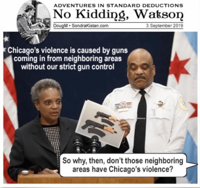 Let me help you two Marxist mental midgets out. Stop blaming guns. You have been doing this for decades and nothing changes. Instead, do what Red States do with far more guns than your pathetically run cities.