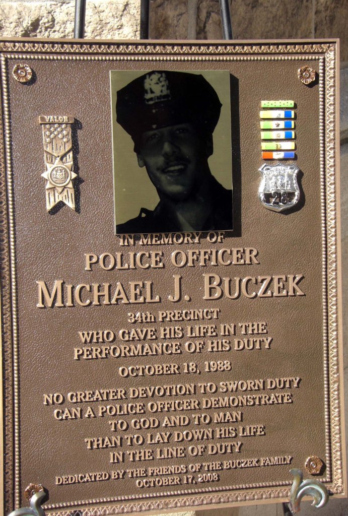 The intersection of Amsterdam Avenue and West 170th Street was renamed “Officer Michael Buczek Avenue” to pay homage to Buczek, who died on Oct. 18, 1988.