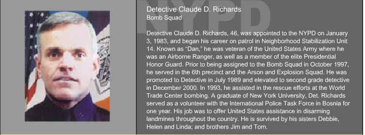 Working on the New York City Police Department’s Bomb Squad can be nerve-racking, to say the least. But there was something about Det. Claude Richards, known to his friends as Dan, that made his colleagues feel safe.