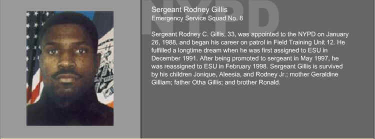 May 15, 2008 – The family patriarch, Rodney Gillis, was an NYPD Emergency Service Unit officer who was killed when the south tower of the World Trade …