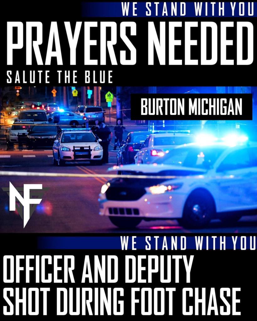 BLUE PRAYER REQUEST: A Burton police officer and a Genesee County sheriff’s deputy are both in critical condition after a suspect opened fire on them during a foot chase on Tuesday afternoon.The incident occurred shortly before 3 p.m. on Dec. 21 in the area of Saginaw Street and Bristol Road on Burton’s west side, WJRT reported.