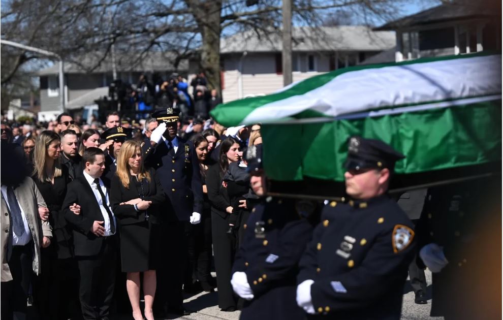New York City Mayor Eric Adams and Police Commissioner Edward Caban also delivered powerful speeches during a funeral mass presided over by the Rev. Michael Duffy.