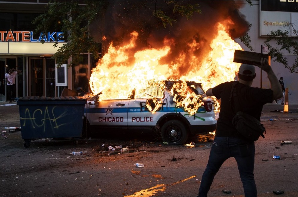 Teacher Christopher Flanigan posted an image of officers attending Jason Rivera’s funeral at St. Patrick’s Cathedral captioned, “5/30/20: NYPD SUV drives into a crowd of protestors. Ideal conditions for reciprocity.”